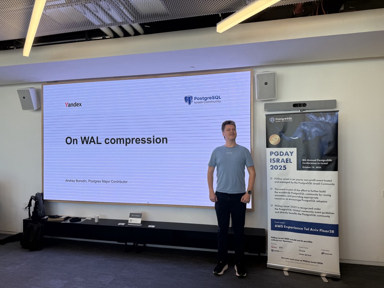 PGDay Israel 2025 в очередной раз показала, насколько открытым, сплочённым и устойчивым является глобальное сообщество PostgreSQL. Официальные комьюнити-мероприятия развивают открытый обмен знаниями в едином профессиональном пространстве, где специалисты из разных стран продолжают совместно развивать технологии. Для российских компаний участие в международных конференциях PostgreSQL — способ не замыкаться внутри локального рынка, а поддерживать живое взаимодействие с мировым сообществом, следить за новыми тенденциями и делиться собственным опытом.